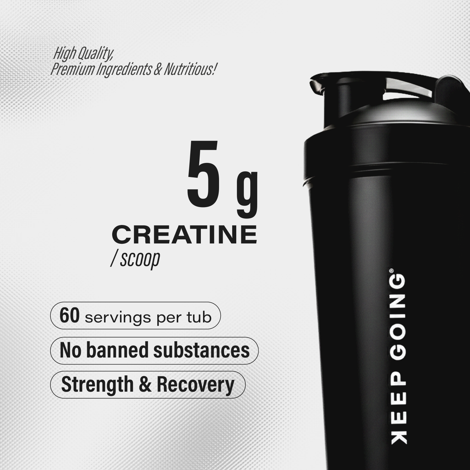 KEEP GOING Creatine Monohydrate is designed for athletes looking to push their limits. With 5g of pure creatine per serving, it supports muscle strength and recovery, making it an essential part of any serious fitness regimen.