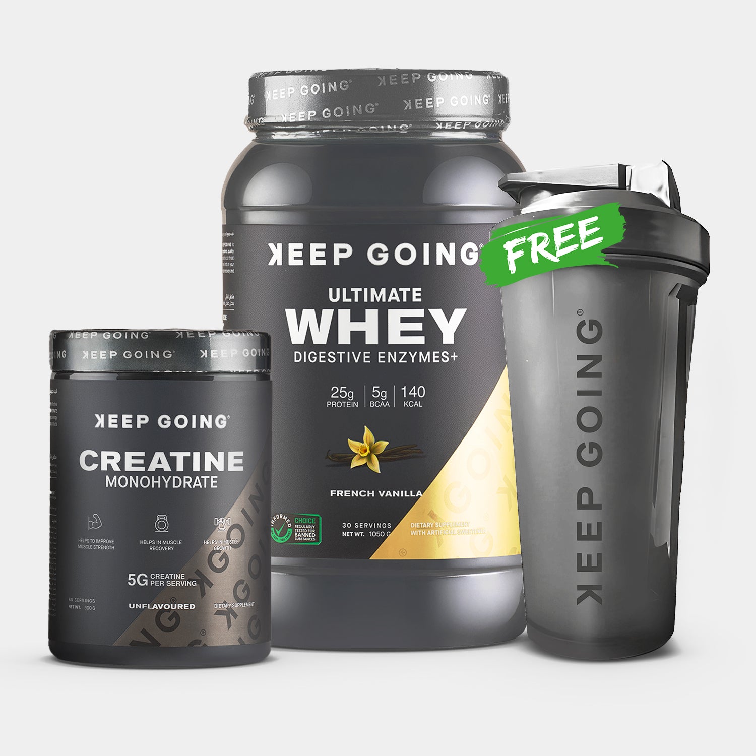French Vanilla Whey + Keep Going Creatine Monohydrate + Free Keep Going Plastic Shaker